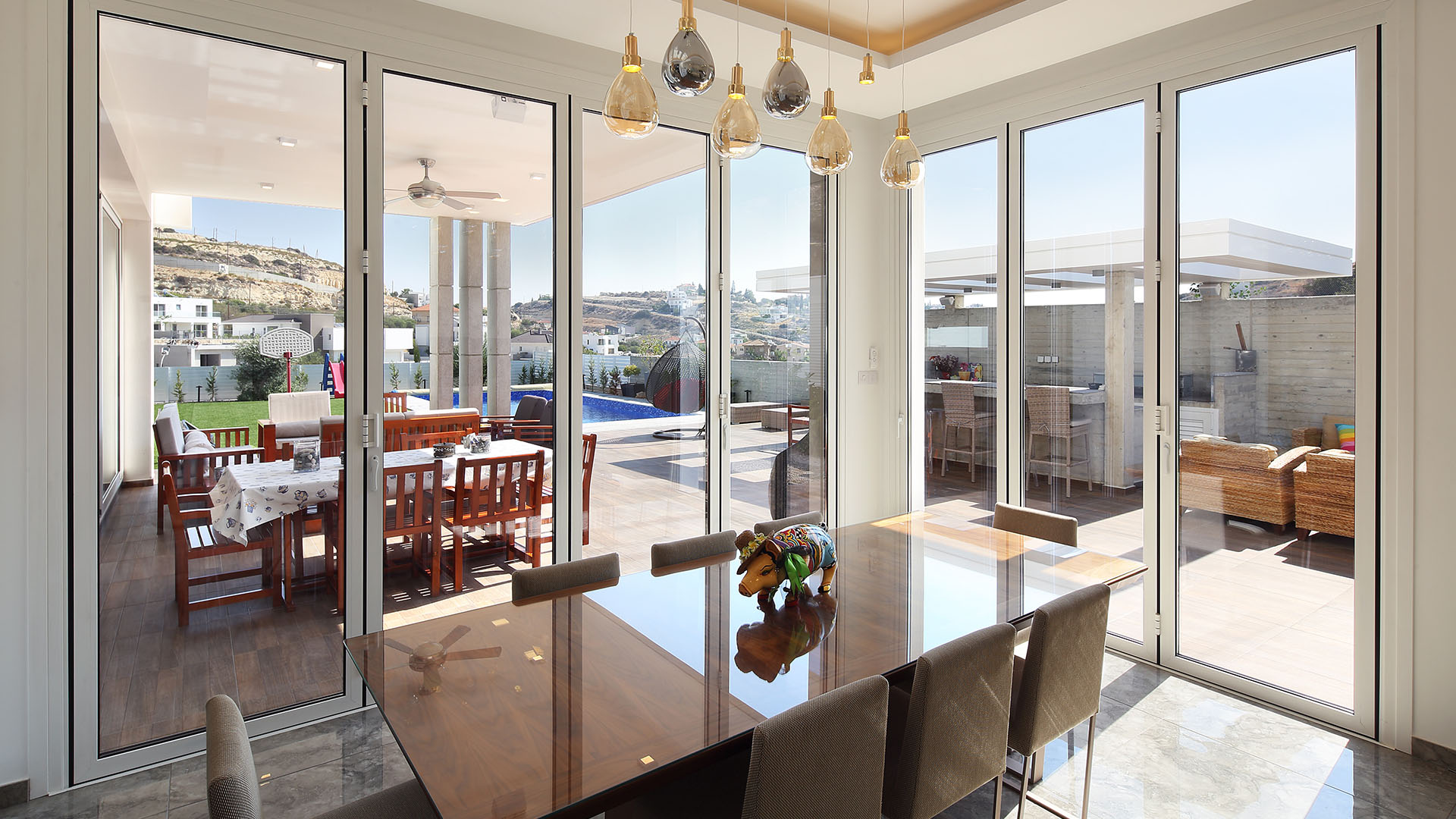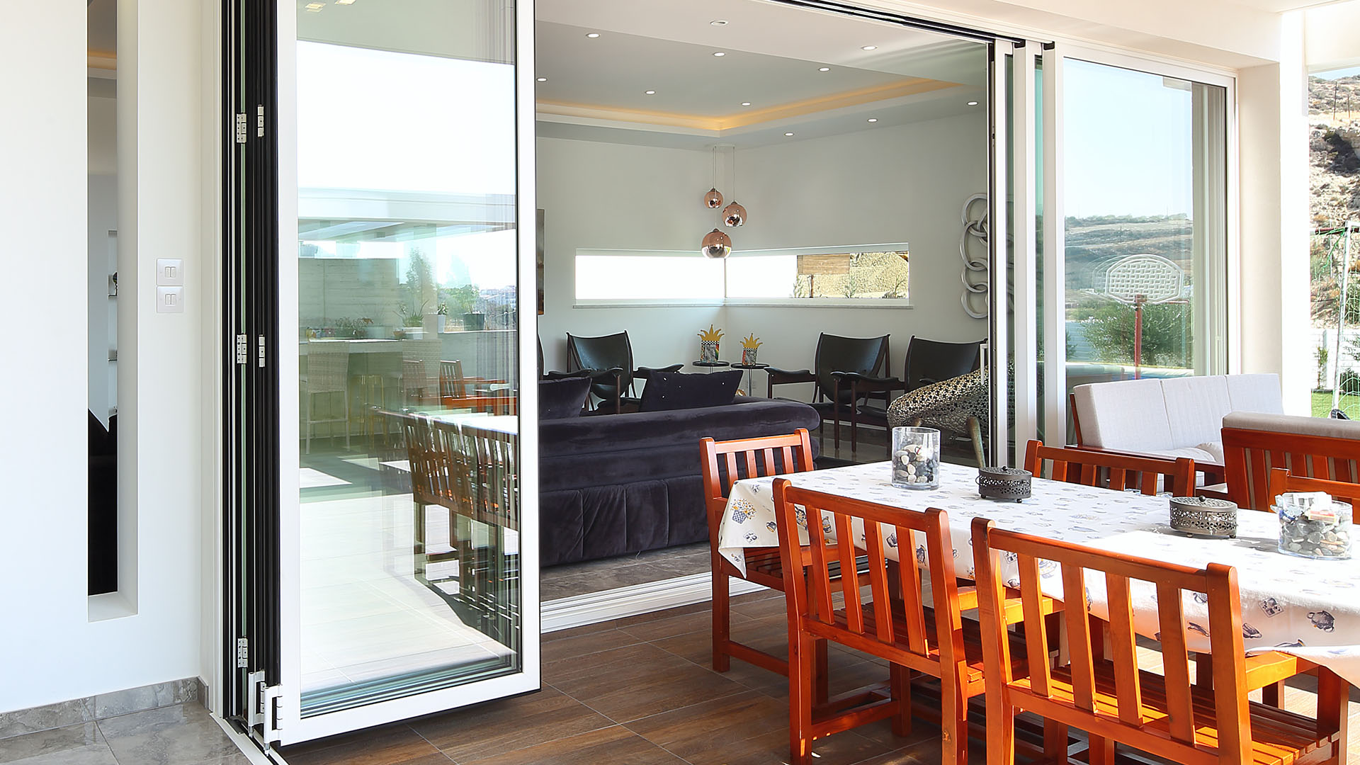 Το κάτω μέρος του συστήματος διατίθεται σε τρείς διαφορετικές εκδόσεις, δίνοντας τη δυνατότητα πλήρους επίπεδου οδηγού καθώς και πολύ υψηλής υδατοστεγανότητας, ικανοποιώντας τις απαιτήσεις του κάθε έργου. Το σύστημα διατίθεται με περιμετρικά λάστιχα καθώς και κανάλι αποστράγγισης υδάτων, επιτυγχάνοντας αξιοζήλευτες επιδόσεις στην στεγανότητα και αεροδιαπερατότητα. Υποστηρίζει όλους τους συνδυασμούς φύλλων καθώς και γωνιακές κατασκευές.