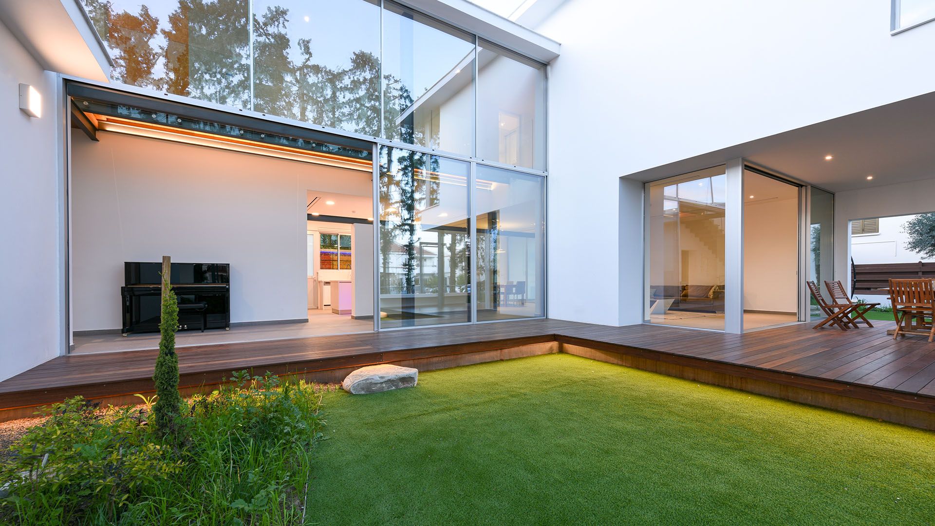 Being a state-of-the-art product suited for special projects it is customisable to make a variety of uncommon typologies like sliding + fixed frameless, sliding + hinged, Sliding + Spider/Curtainwall etc. while always keeping the dimensions slim. It is also able to do corners without post and combo configurations like sliding integrated with railing and shading devises both internal and external.