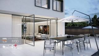 Το ανοιγόμενο σύστημα Rabel 8700 Slim Super Thermal έχει την δυνατότητα να κατασκευάσει slim πόρτες οι οποίες αισθητικά μπορούν να συνδυαστούν με Super Slim συρόμενα για χρήση σε μινιμαλιστικά κτήρια. Οι πόρτες διατίθενται με μεντεσέδες βαρετού τύπου η με αξονικό σύστημα. Στο κάτω μέρος δεν απαιτείται η εγκατάσταση προφίλ για καλύτερο κλείσιμο παρόλο που υπάρχει διαθέσιμη μια μικρή ράμπα.
