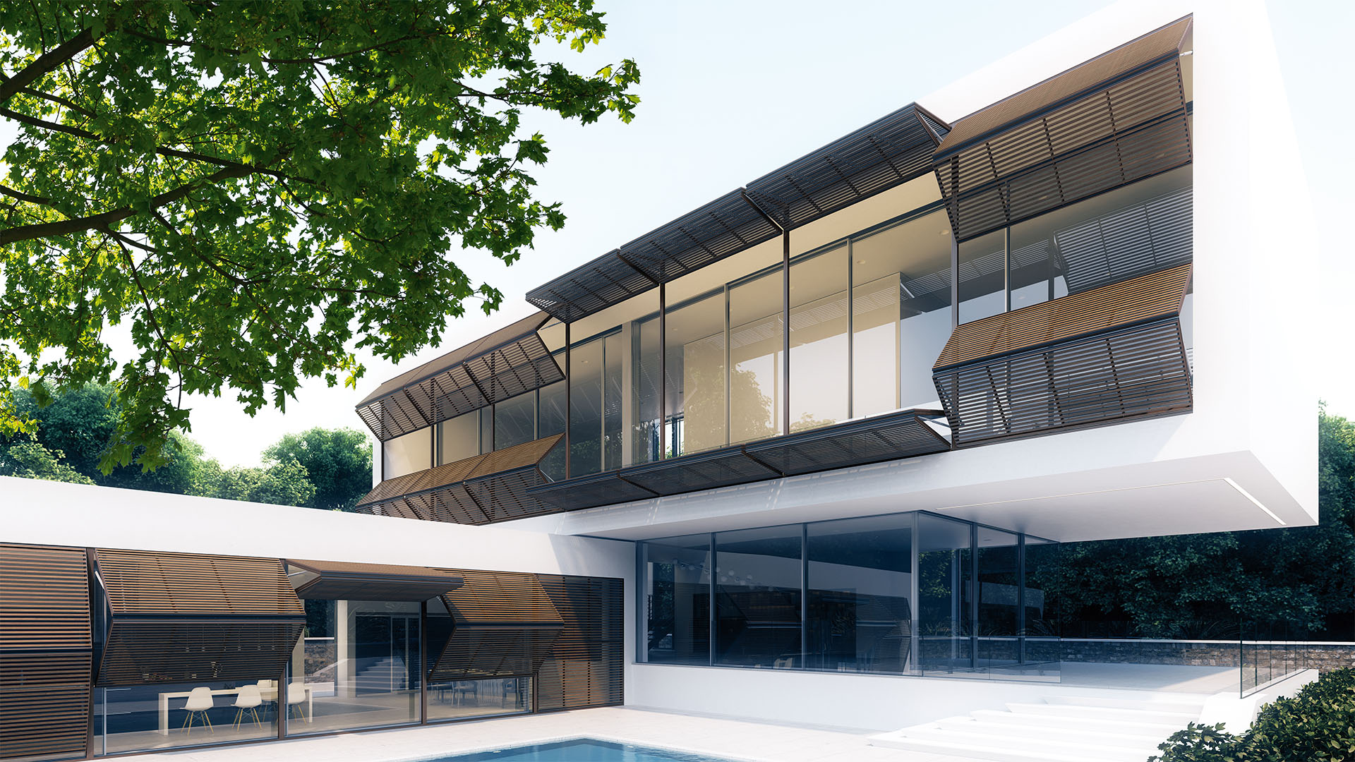 Το σύστημα έχει σχεδιαστεί έτσι ώστε να ενσωματώνεται πλήρως στην εξωτερική όψη του κτιρίου πετυχαίνοντας ένα ενιαίο αποτέλεσμα. Πολυάριθμες εκδώσεις είναι διαθέσιμες για χρήση σε συνδυασμό με fiber cement, HPL, συνθετικά φύλλα, ξύλο, γυαλί, κεραμικό καθώς και μεταλλικά φύλλα. Έχοντας λάβει τις απαραίτητες πρόνοιες το υλικό κάλυψης του κτιρίου μπορεί να χρησιμοποιηθεί και στο σκίαστρο. Επιπλέων υπάρχει η δυνατότητα χρήσης οριζόντιων η κάθετων περσίδων.